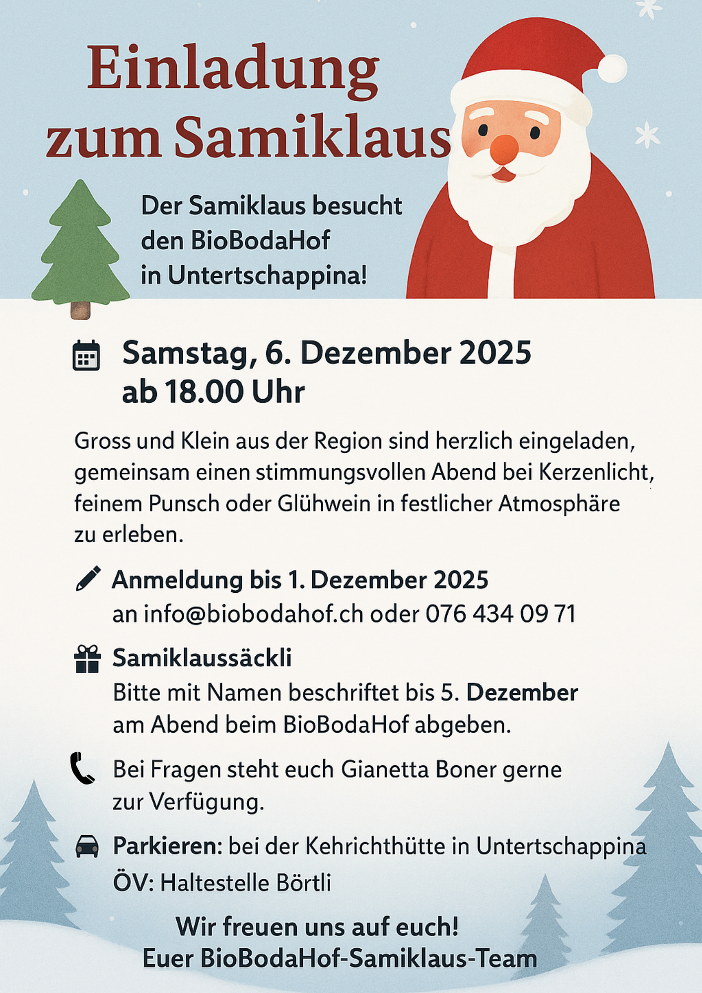 Anmeldung bitte bis 1. Dezember 2025 an info@biobodahof.ch oder 076 434 09 71